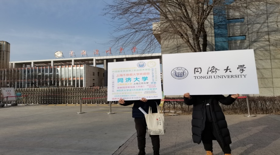 Xue Yaojia, Chen Qi and Luo Yongqiang carried out a joint off-campus session with students from Fudan University, Shanghai Jiao Tong University, etc. The Tongji booth was crowded with students for consultation. The three Tongji students introduced all kinds of information about Tongji to many interested students and parents who failed to attend the on-campus session. Even some fresh students with a dream of being admitted to Tongji specially came to ask for advice out of admiration.