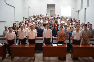 Professor Yu Minjiang made a speech as the teacher representative. Also as a newcomer in the School, he said that he was looking forward to a new life here, just like the freshmen present. Prof. Yu shared three thoughts with the students on how to become a qualified or even excellent postgraduate in this era of “leading a hurried life, too busy to experience”: First, set an ambitious goal. In the era of information explosion, social complexity, and fame and fortune temptation, a person’s will and courage will be tested more evidently. He hoped that the students would have an ambition to “ordain conscience for Heaven and Earth, secure life and fortune for the people, continue lost teachings for past sages, and establish peace for all future generation”, have the courage to “ask, on this boundless land, who rules over man’s destiny?”, and more importantly, have the responsibility to “drive out evil and usher in good”. Second, be self-disciplined when alone. Through reading, one can cultivate moral character and control his desires, so Prof. Yu suggested the students study and read with high concentration and self-discipline. Third, promote the fine tradition and take on new perspectives. As Prof. Yu believed, this is a gem of wisdom of the Chinese traditional culture. Academic exploration and research is a bounden duty to postgraduates who should also conduct interdisciplinary studies. Finally, Prof. Yu expected the students to deliver more academic achievements, become less impetuous, multiply the chances of success, and beat inertia, thus bringing out their best.