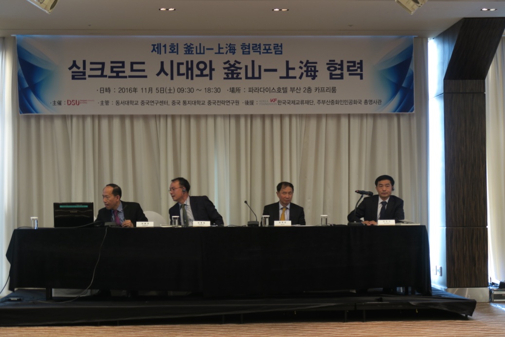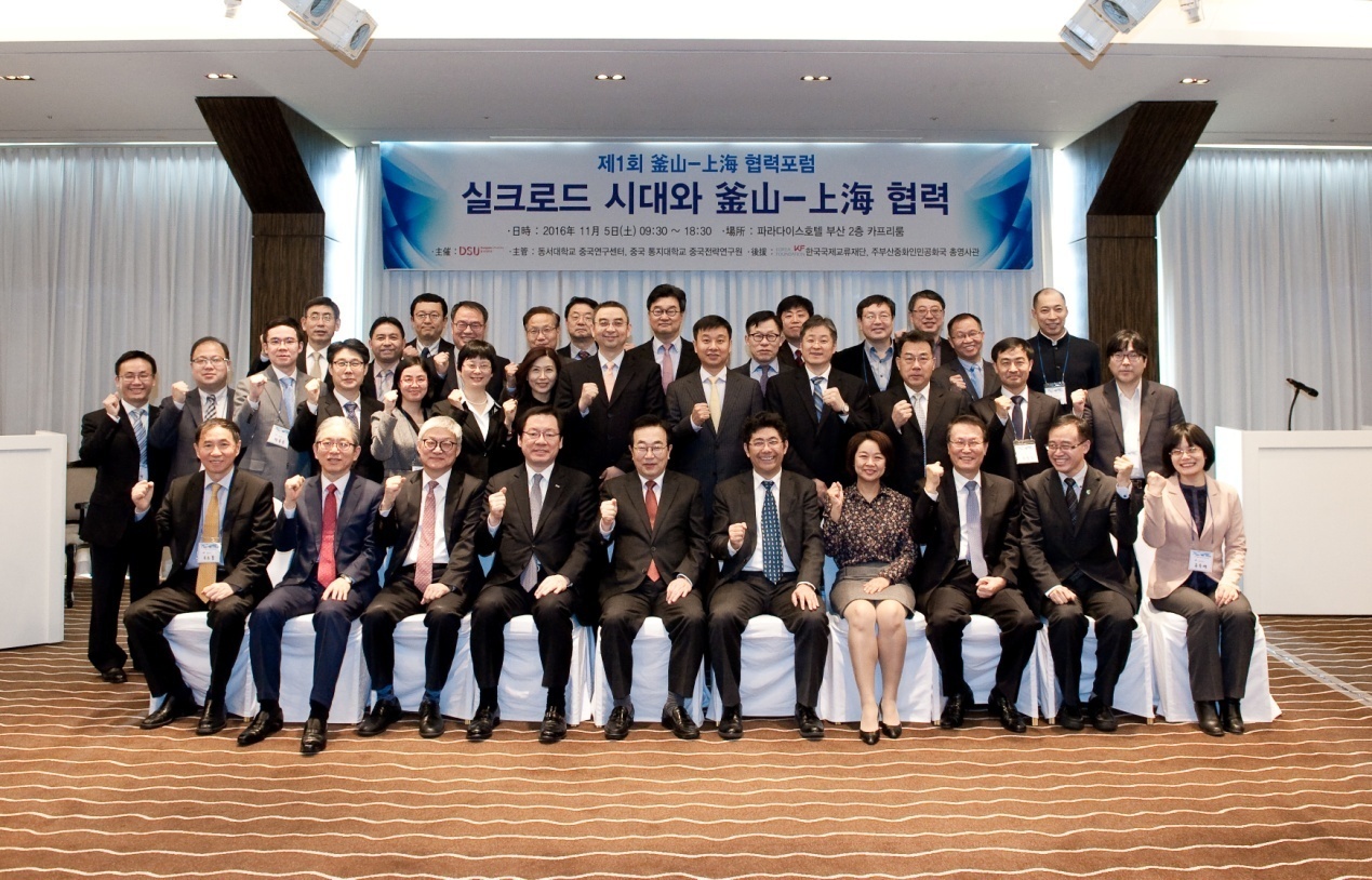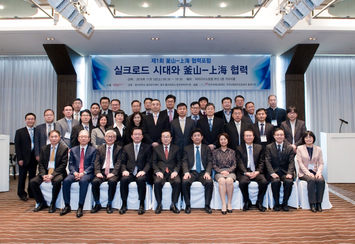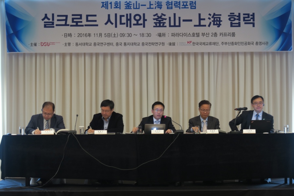 On November 4-6, 2016, a delegation led by Prof. Lyu Peiming, Vice President of Tongji University, visited Busan, South Korea and attended the 1st Shanghai-Busan Cooperation Forum co-hosted by the Institute for China & World Studies of Tongji University and the Center for Chinese Studies of Dongseo University. The forum brought together 17 Chinese academic and business representatives from the Institute for China & World Studies, the School of Political Science & International Relations (SPSIR), the International School, and the School of Economics and Management of Tongji University, as well as Fudan University and Jilin University; and 21 South Korean representatives from Dongseo University,Pusan National University, Dong-A University, Kyungsung University, Korea Maritime & Ocean University (KMOU), and Busan government departments and businesses.
