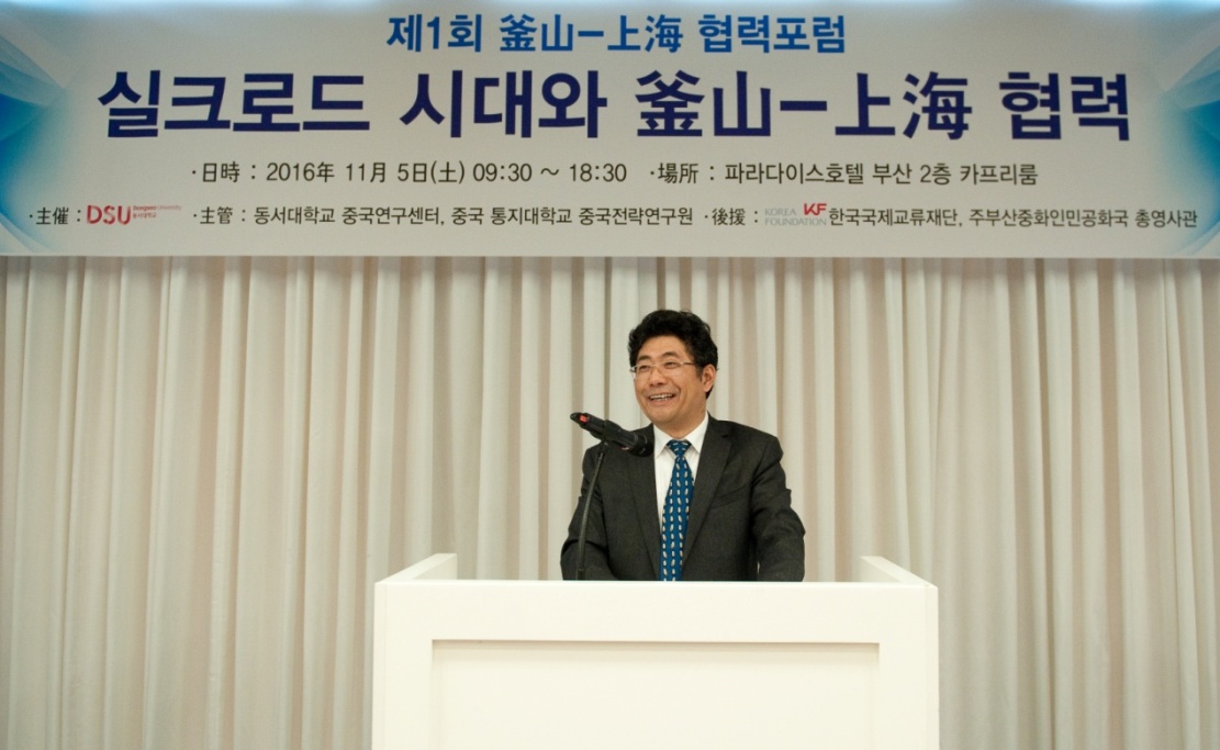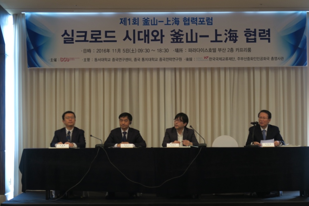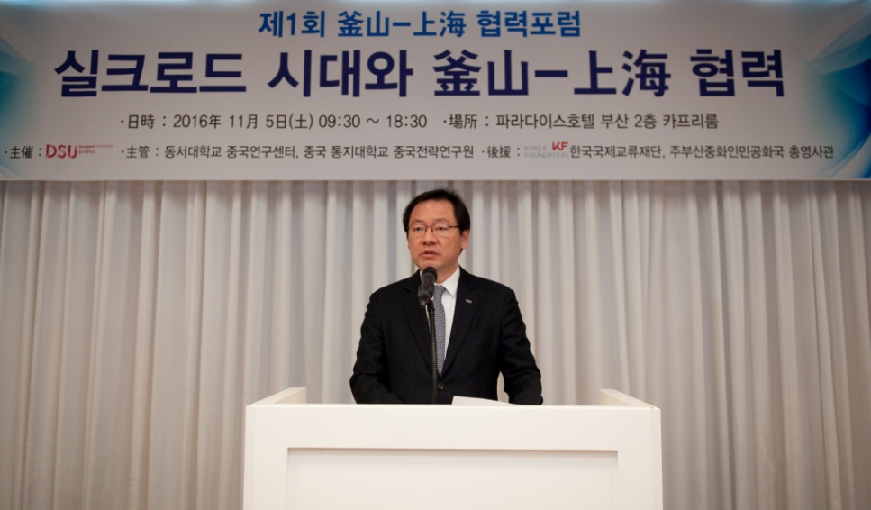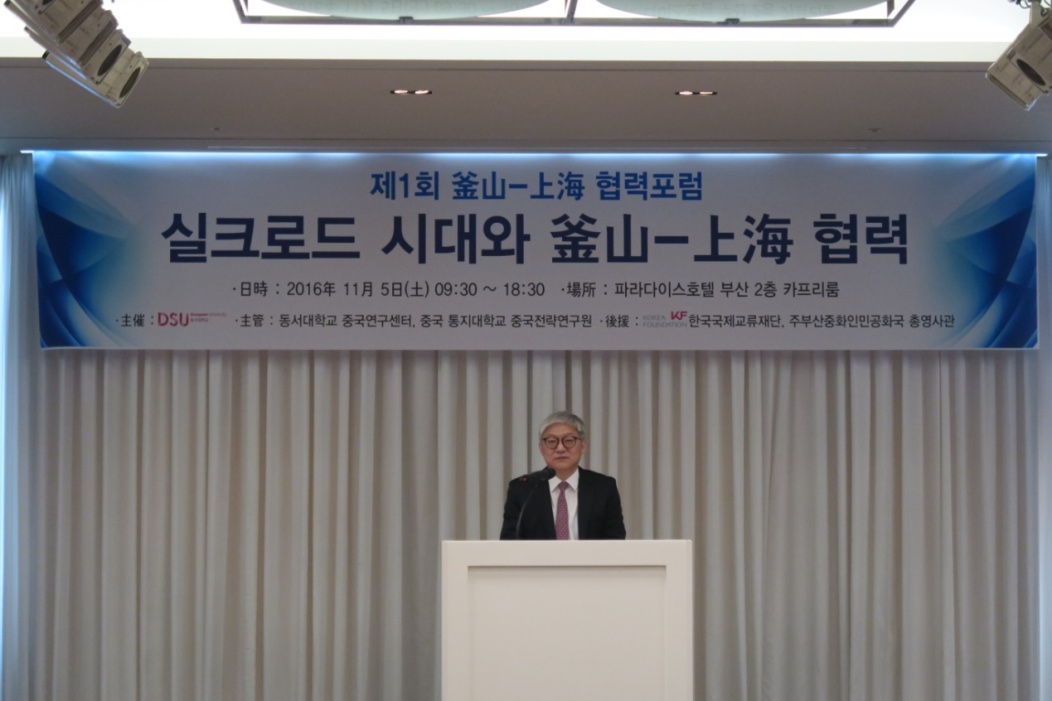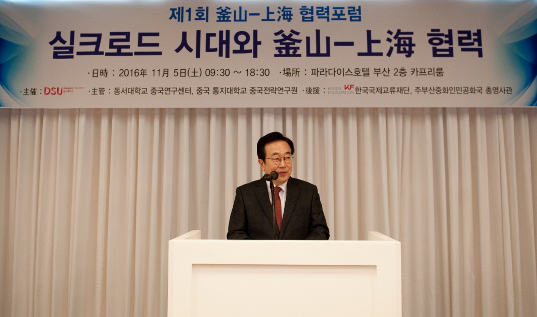 On November 4-6, 2016, a delegation led by Prof. Lyu Peiming, Vice President of Tongji University, visited Busan, South Korea and attended the 1st Shanghai-Busan Cooperation Forum co-hosted by the Institute for China & World Studies of Tongji University and the Center for Chinese Studies of Dongseo University. The forum brought together 17 Chinese academic and business representatives from the Institute for China & World Studies, the School of Political Science & International Relations (SPSIR), the International School, and the School of Economics and Management of Tongji University, as well as Fudan University and Jilin University; and 21 South Korean representatives from Dongseo University,Pusan National University, Dong-A University, Kyungsung University, Korea Maritime & Ocean University (KMOU), and Busan government departments and businesses.