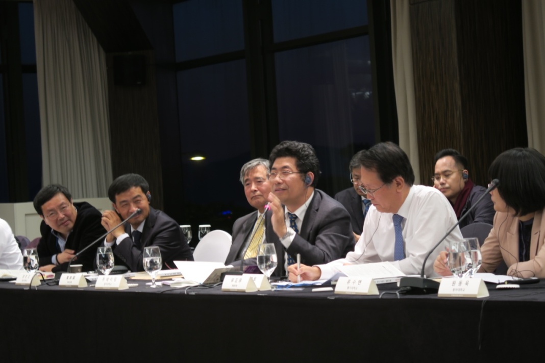 Then, the panel sessions kicked off. Amb. Shin moderated the first session themed “The Belt and Road Initiative and International Relations in East Asia”. The three panelists of this session included: Won Dong-wook, a professor at Dong-A University, Wang Cungang a professor at SPSIR, and Cha Chang-hoon, a professor at Pusan National University.