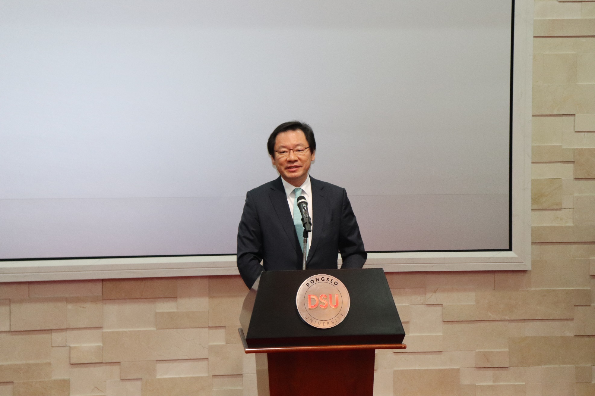 At the welcome party held by DSU for the Tongji delegation on the evening of October 12, DSU President Chang Je-kuk, Tongji Deputy Secretary Feng Shenhong and other guests delivered speeches successively to congratulate the successful holding of this forum.