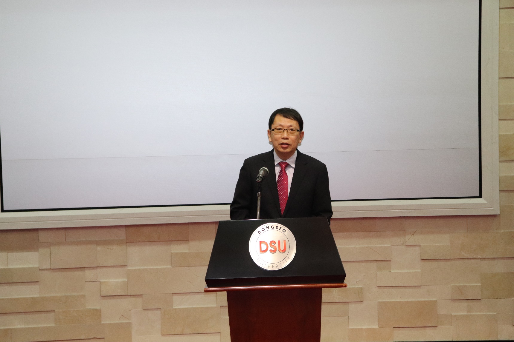 On October 13, themed “Changes in the Situation on the Korean Peninsula and Busan-Shanghai Cooperation”, the forum officially kicked off in the International Conference Hall on the sixth floor of Minseok Library, DSU. In the opening speech, Ambassador Shin Jung-seung, Director of the Center for Chinese Studies of DSU, introduced the background of this forum and the main guests attending this forum. DSU President Prof. Chang Je-kuk delivered a welcome speech on behalf of DSU and extended a warm welcome to the participants from China and South Korea.